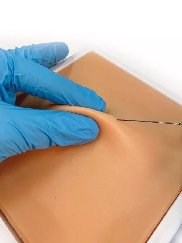 På denna flerskiktade vävnadsplatta kan subkutana injektioner hos hundar och katter övas på ett realistiskt sätt. Den hudliknande ytan kan palperas i kutis och subkutis och möjliggör att ett hudveck höjs för att hitta rätt injektionsdjup. Mindre mängder injektionsvolymer kan appliceras på plattan och olika injektionsvinklar och -djup kan tränas. Den mjuka ytan stängs efter injektionen och möjliggör användning av flera injektioner.