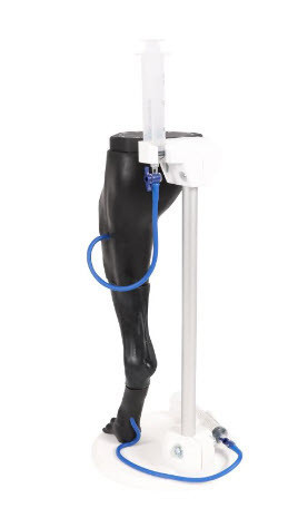 "Vicky" tillåter elever att öva på venpunktionsprocedurer på den laterala venen saphena samt intramuskulära och subkutana injektioner i övre låret.
